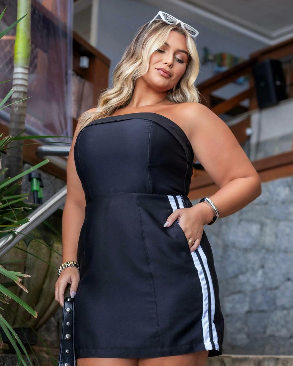 Transforme seu visual com o nosso incrível Conjunto Cropped Tomara Que Caia e Short Saia! Este conjunto é confeccionado em tecido de alfaiataria com elastano, proporcionando não apenas um caimento perfeito, mas também conforto e liberdade de movimento.