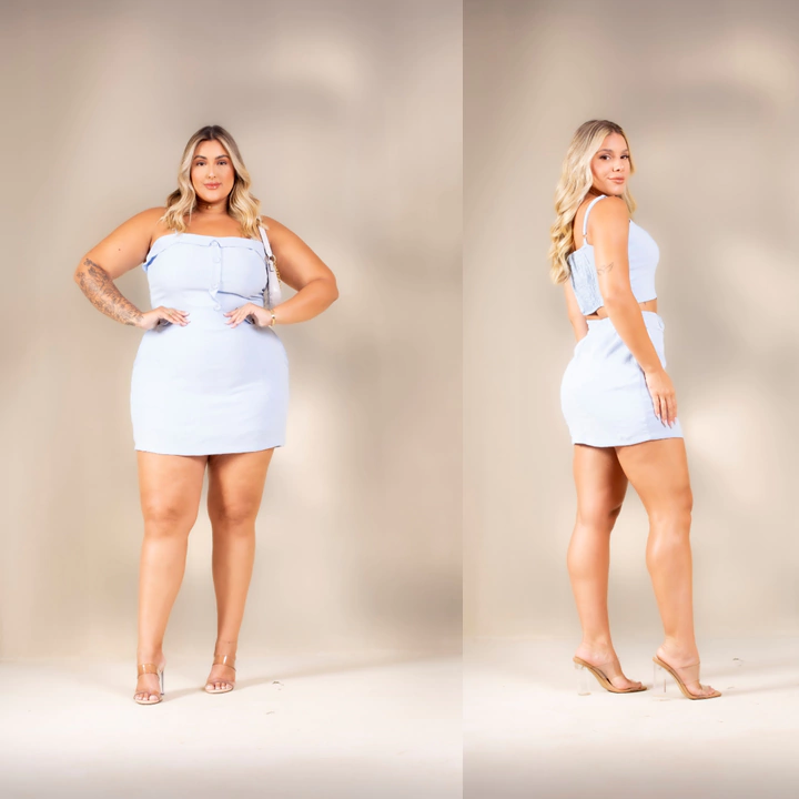 1 CONJUNTO COM TOP E SAIA SHORTS C/ BOTOES EMCAPADOS
